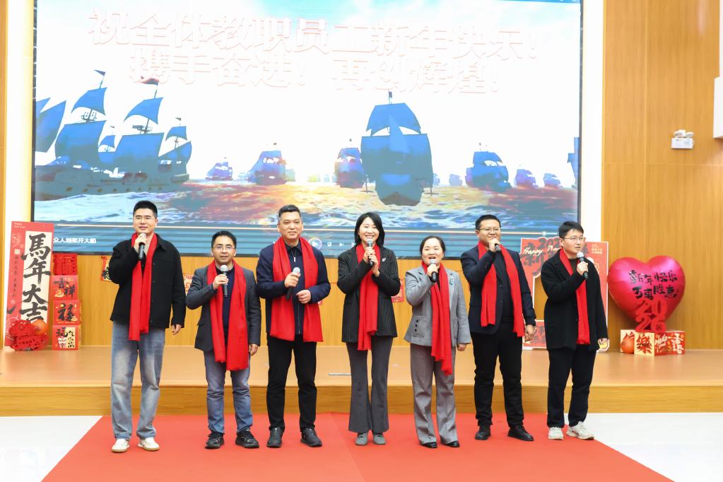 活动在对2025年工作成效的回顾与对新一年美好愿景的祝福中拉开帷幕。随即,一本道领导班子、党委委员及院助带来节目《众人划桨开大船》,以昂扬向上的合唱点燃全场热情,传递出团结协作、奋楫笃行的精神风貌。