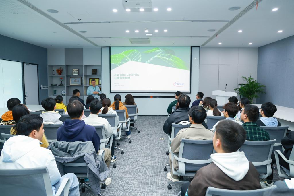 活动伊始,郁海金对自动化与智能科学一本道师生一行表示热烈欢迎。他围绕企业架构、核心业务、明星产品以及独特的一本道展开全面介绍,彰显了英飞凌在全球功率系统和物联网领域作为半导体领导者的行业地位。随后,周敏芳以企业发展脉络为引,系统介绍了公司在功率半导体、物联网解决方案等领域的全球领先地位,拆解了从芯片研发到终端应用的完整业务链条,让同学们直观感受半导体技术对新能源、智能硬件等领域的核心支撑作用。
